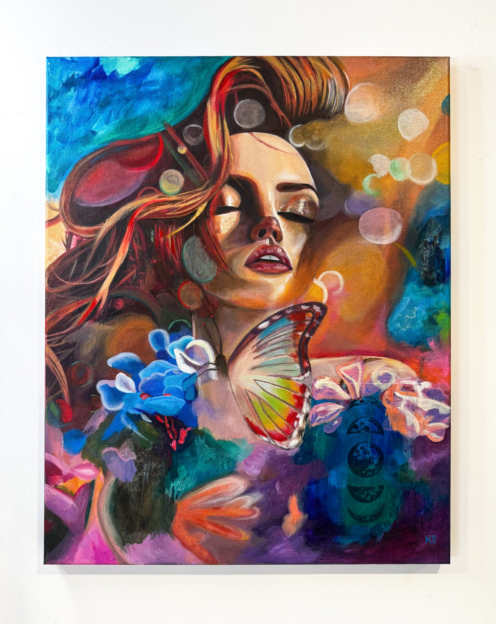 Acrylic and oil on canvas. 16x20 inches. UV filtered varnish for protection against discolouration. Prints also available.