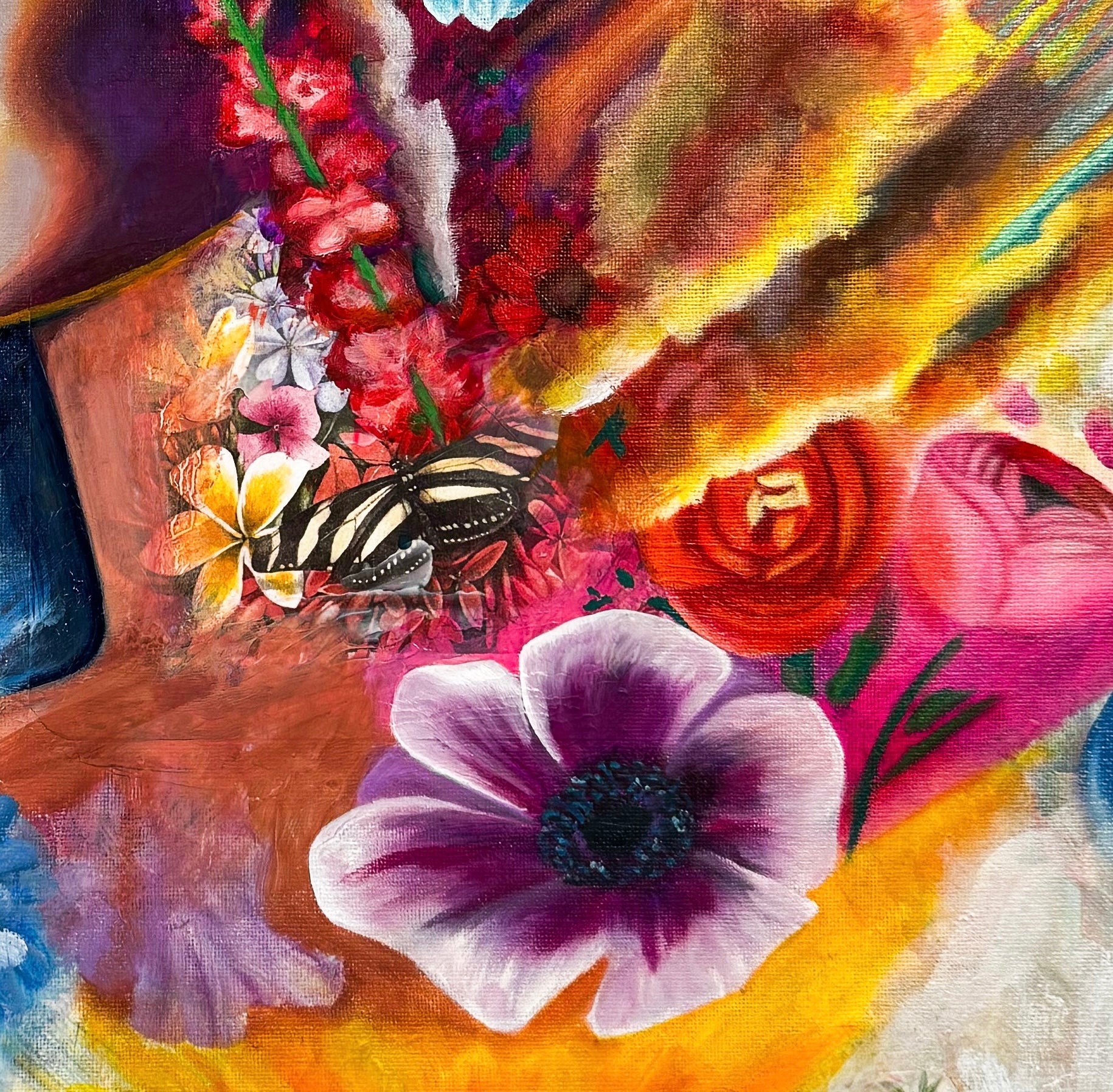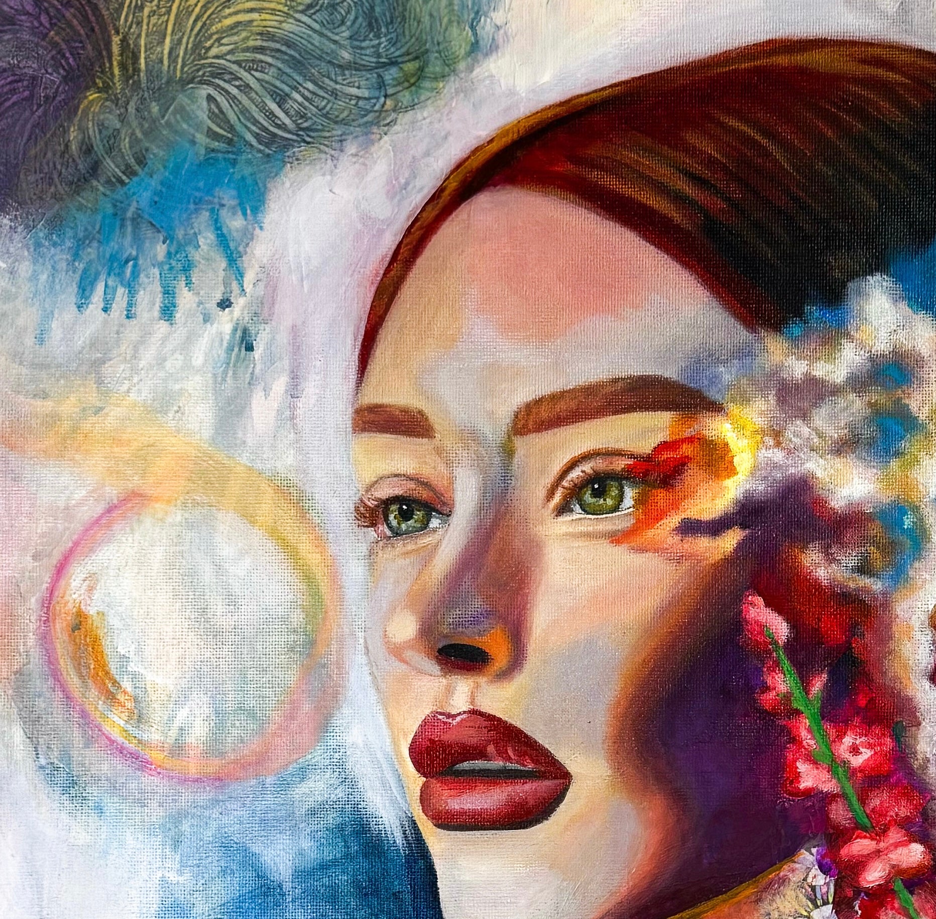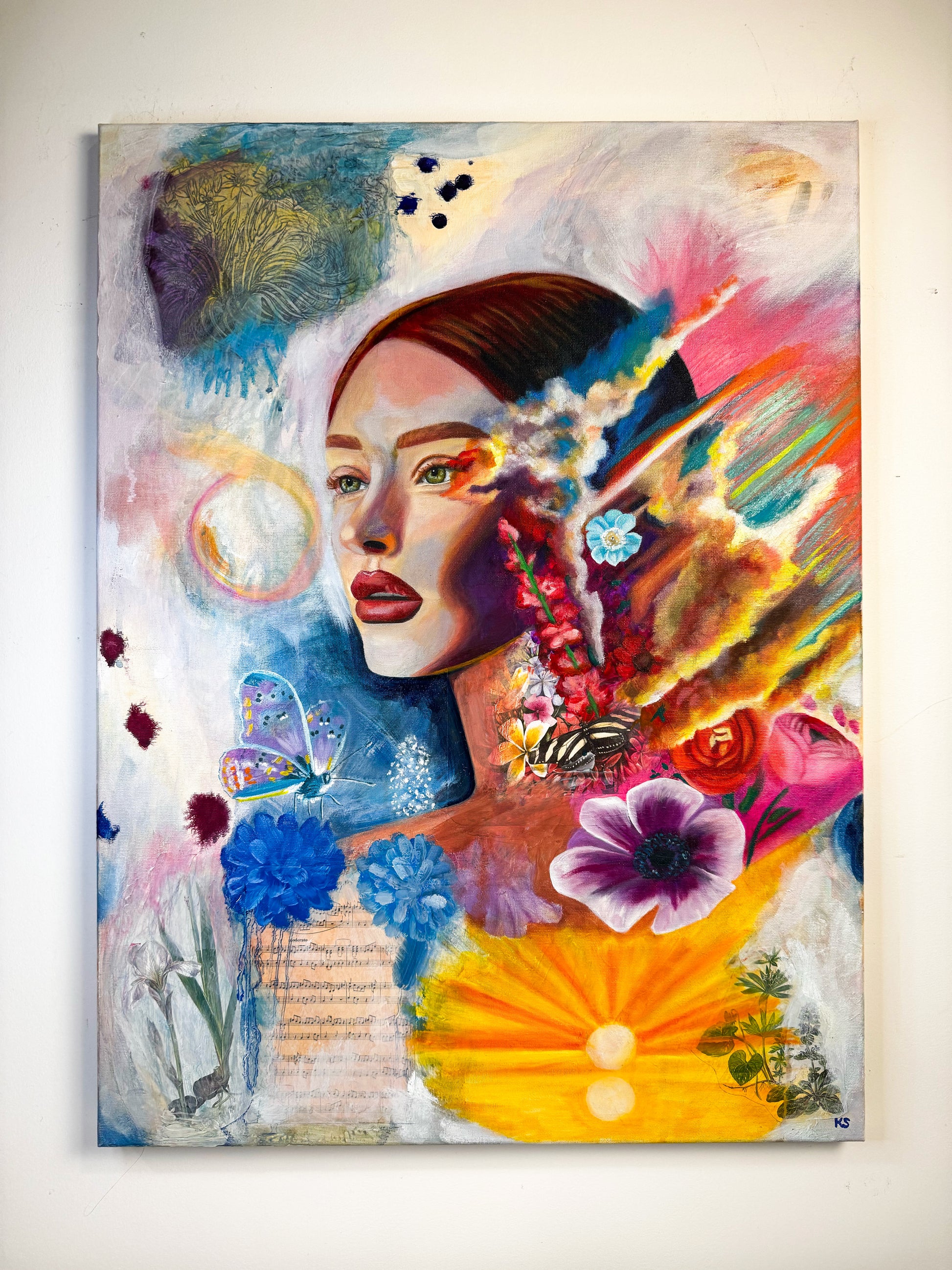 Acrylic and oil on canvas. 18x24 inches. UV filtered varnish for protection against discolouration. Prints also available.